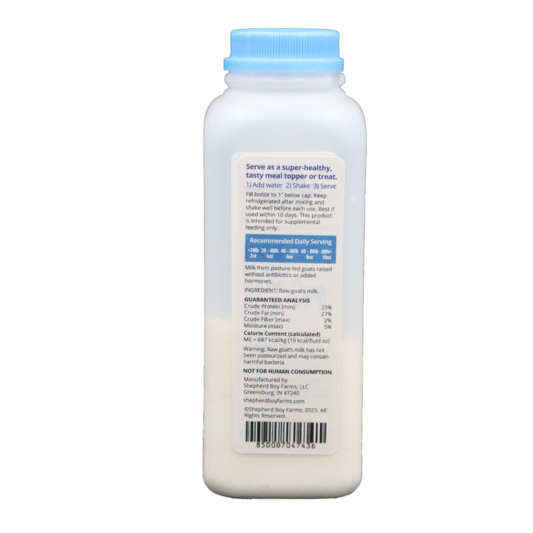 1 ounce of our freeze-dried goat's milk makes 8 ounces of goat's milk, providing a concentrated nutritional value!