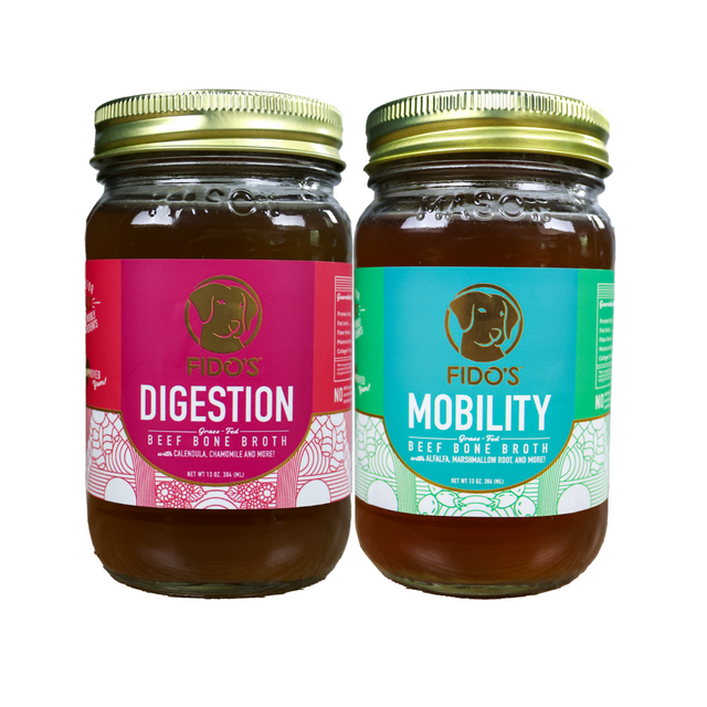 Fido's collagen-rich bone broth for dogs is a nutritious combination of gently simmered grass-fed beef bones and organic herbs that support your dog's digestion from a variety of angles.