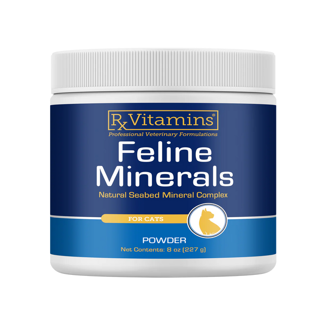This dietary supplement provides macro and micro-mineral supplementation--specifically calcium--for your kitty. The mineral blend is made from an exclusive source mined in the western US and contains nine macro- and micro-minerals for optimum health. This powder is also hypoallergenic with no flavoring or preservatives. Help maintain optimum health in your companion with Rx Vitamins Feline Minerals Cat Supplement.