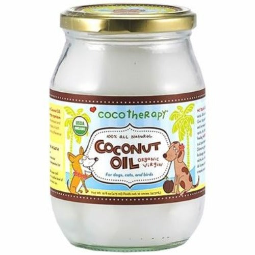 CocoTherapy Organic Virgin Coconut Oil is an all natural, USDA organic oil that can be given orally or topically to provide medium chain fatty acids to cats, dogs, and birds. Each jar of this pristine coconut oil was extracted from fresh, organically grown coconut that was then cold-pressed in small patches to ensure its quality. The coconuts are grown in a USDA certified organic coconut farm.