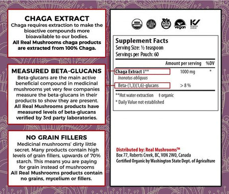 Real Mushrooms | Organic Siberian Chaga Extract Powder – 60g