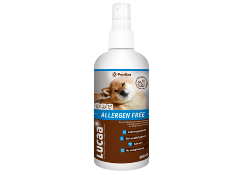 LUCAA+ Pet Probiotic Allergen Spray. contains ‘good’ (probiotic) bacteria, naturally sourced from plants. These helpful probiotics maintain a healthy balance to the skin (the microbiome).